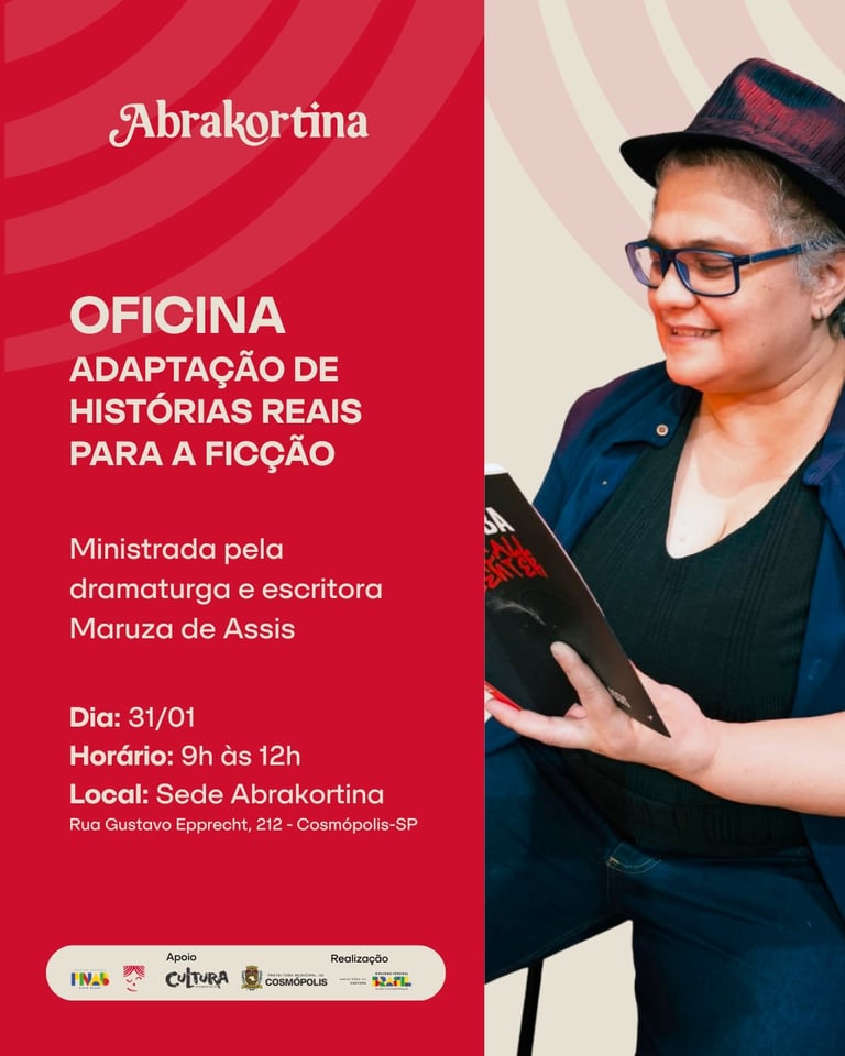 Maruza Assis, a idealizadora do Contos Na Cena é dramaturga, roteirista e escritora. Sua obra percorre momentos da história recente, o cotidiano contemporâneo e as conexões humanas dentro desses contextos.